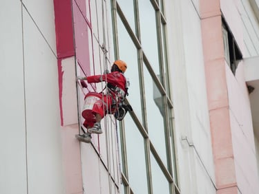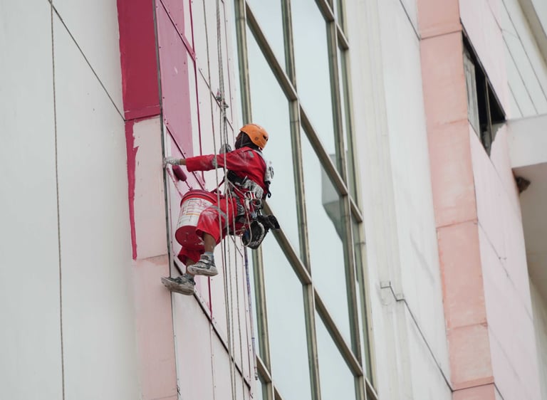 Layanan pengecatan eksterior gedung untuk apartemen dan gedung perkantoran dengan metode kerja aman dan presisi tinggi. Pekerjaan meliputi persiapan permukaan, perbaikan minor, aplikasi cat sesuai spesifikasi bangunan, serta pengerjaan area ketinggian menggunakan rope access bersertifikat, sehingga hasil pengecatan rapi, tahan cuaca, dan memberikan perlindungan jangka panjang pada fasad gedung.