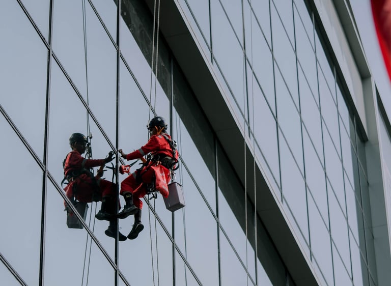 Layanan pembersihan ACP (Aluminium Composite Panel) gedung untuk menjaga tampilan fasad tetap bersih dan profesional. Proses cleaning dilakukan menggunakan peralatan khusus, metode aman di ketinggian, serta tenaga rope access bersertifikat, sehingga efektif menghilangkan noda, jamur, dan polusi tanpa merusak permukaan ACP.